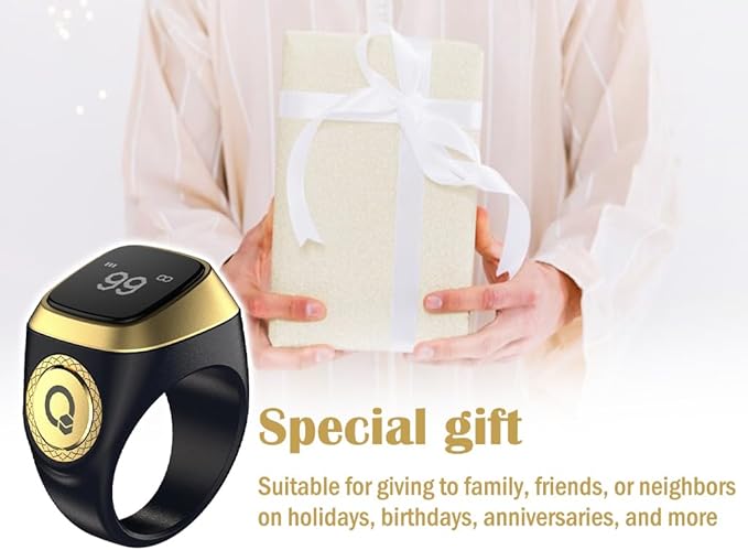 - *OLED Display: Featuring a built-in 0.49-inch O-LED display, this ring provides clear visibility of your counts and reminders, That you stay focused during your prayers without any distractions.